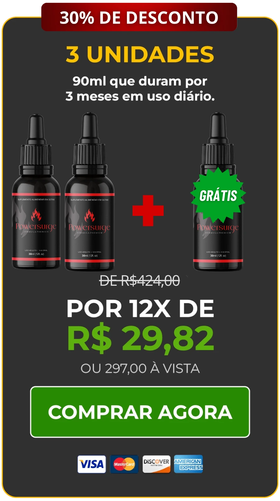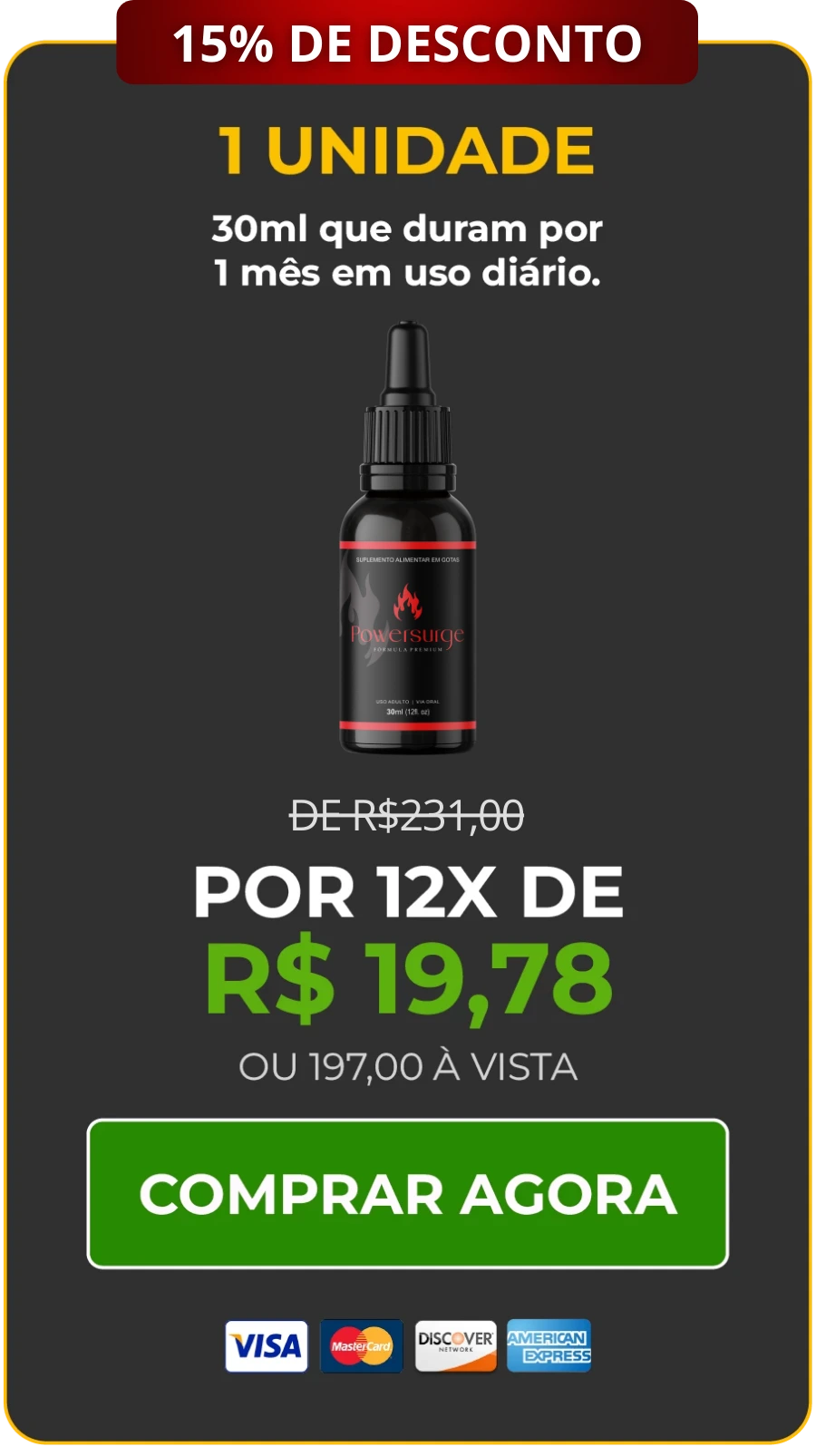 “Com PowerSurge, voltei a me sentir jovem e cheio de energia. Minha disposição melhorou tanto na cama quanto nas atividades do dia a dia. Estou muito feliz com os efeitos positivos desse suplemento!“